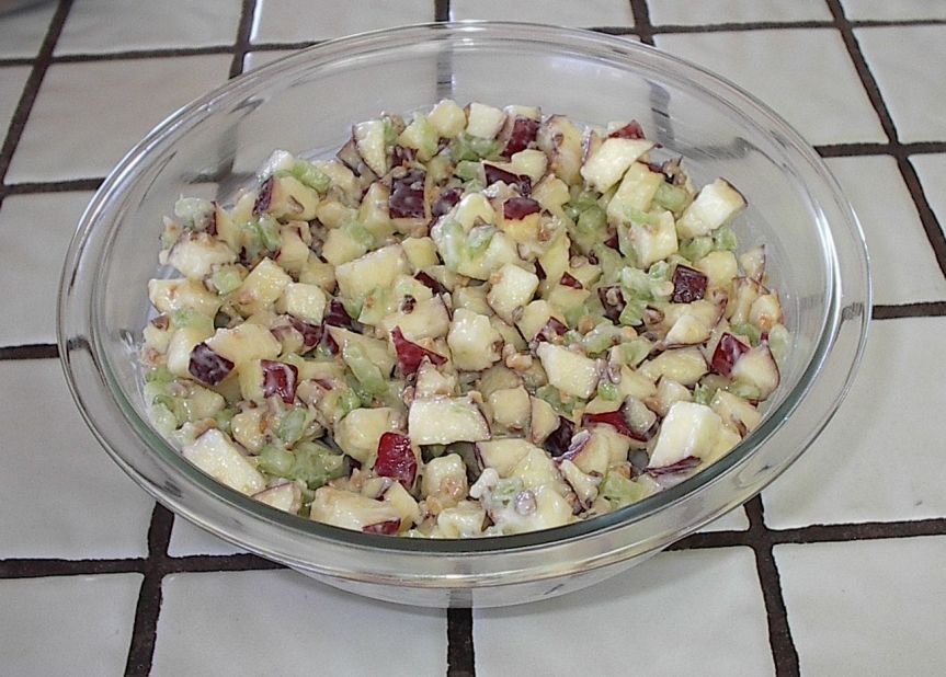 Put the apple and celery pieces into a large bowl.